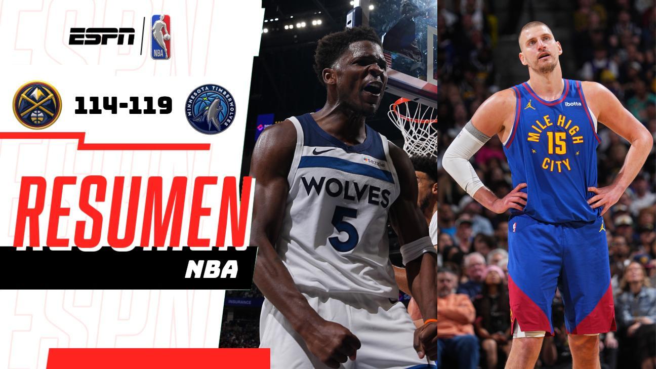 Anthony Edwards anotó 30 puntos, Julius Randle sumó 24 pts y los Minnesota Timberwolves remontaron ante los Denver Nuggets para vencerlos 119-114, empatando así su serie de playoffs de la Conferencia Oeste.