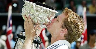El sueco Thomas Johansson besa el trofeo por obtener el Abierto de Australia en individuales masculino, tras vencer en la final al ruso Marat Safin